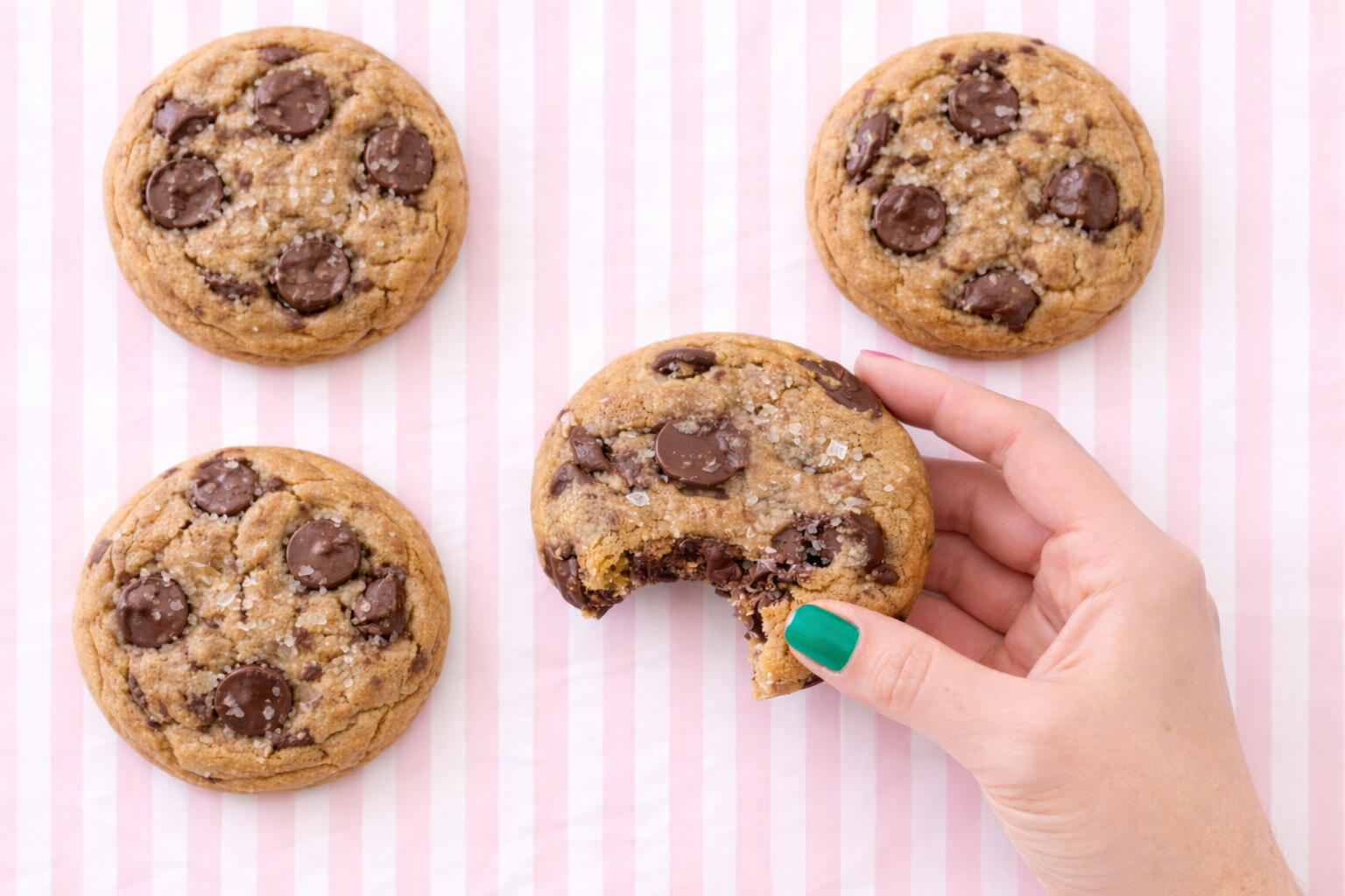 A buttery, ooey gooey, caramel rich cookie with super melty pools of chocolate and a soft, crumbly bite that stays chewy, never crunchy or cakey.